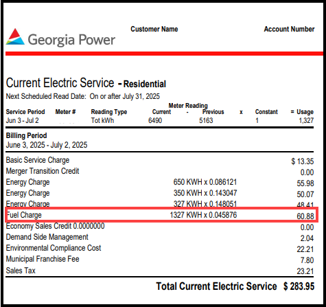 Those other pieces are not frozen. If you’re not seeing those itemized on your bill it’s because Georgia Power groups multiple line items into the Service Charge, but you can call Georgia Power’s customer service line and ask for detailed billing going forward. Then you will see something like this on your bill: